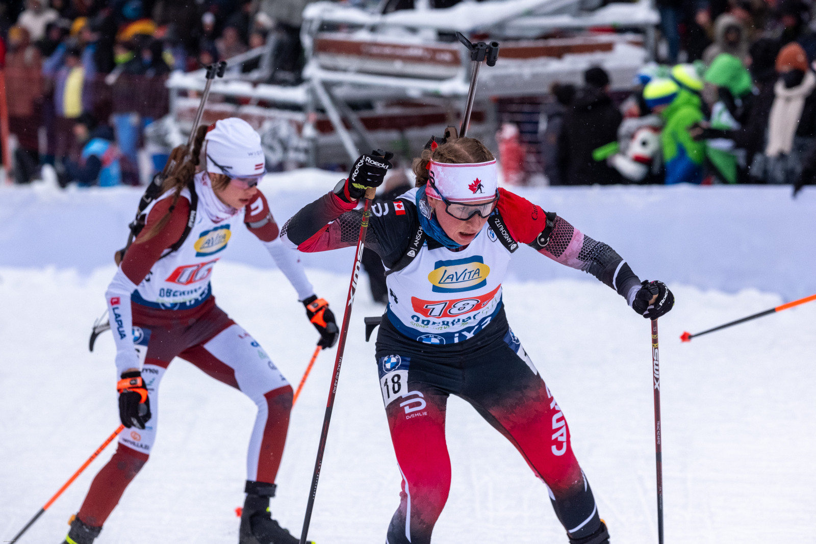 Shilo Rousseau (CAN) vor Estere Volfa (LAT)
