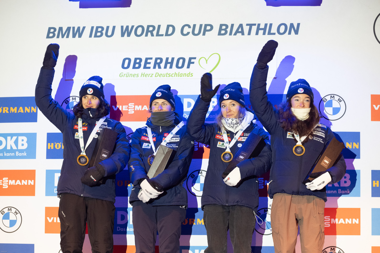 Siegerinnen der Staffel (Julia Simon, Justine Braisaz-Bouchet, Oceane Michelon, Lou Jeanmonnot) FRA